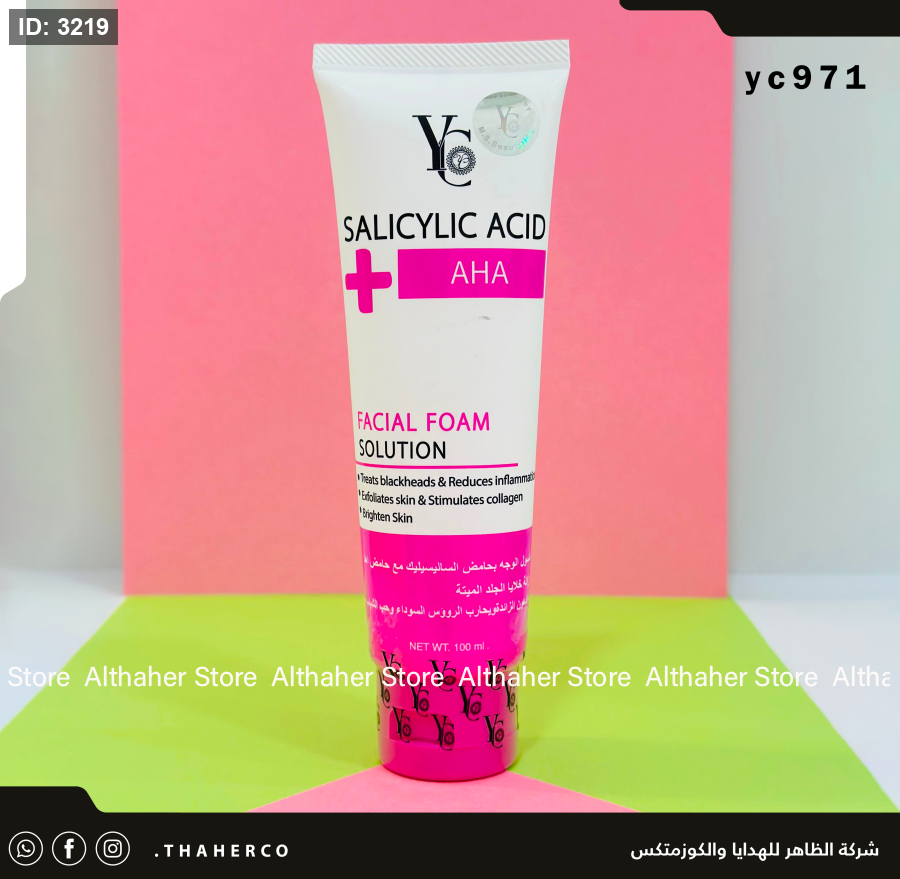 واي سي غسول الوجه بحمض الساليسيليك وحمض AHA لتقشير البشرة 100مل